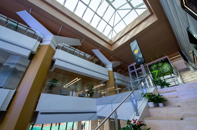 在备受瞩目的三期改扩建工程封样楼观摩环节,这座承载着T3航站楼设计理念的“样板博物馆”首次揭开面纱。封样楼主要遵循“所见即所得”和“零碳建筑”的理念建设,实景还原未来T3航站楼内外部的装修效果,力求从材料到工艺全面封样,确保质量与效果双重保障。同时,封样楼采用光伏发电、地热供热制冷的新能源供应模式,也作为“零碳机场”项目的样板间。