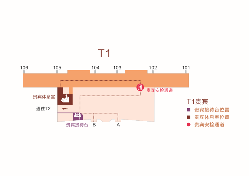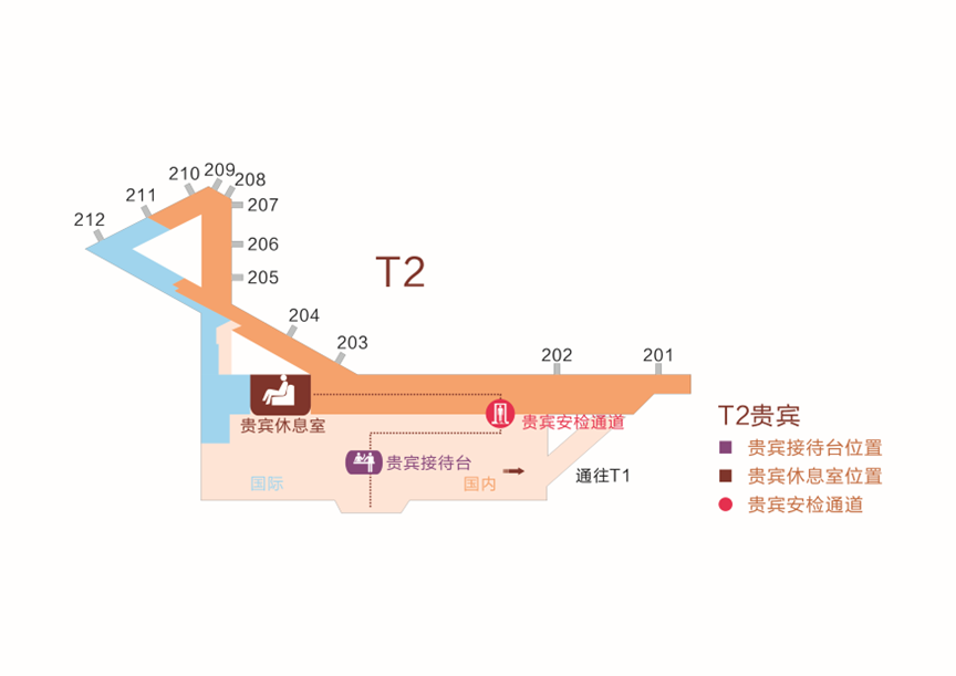 嘉宾区位于太原武宿机场T1、T2航站楼2层出港大厅内。