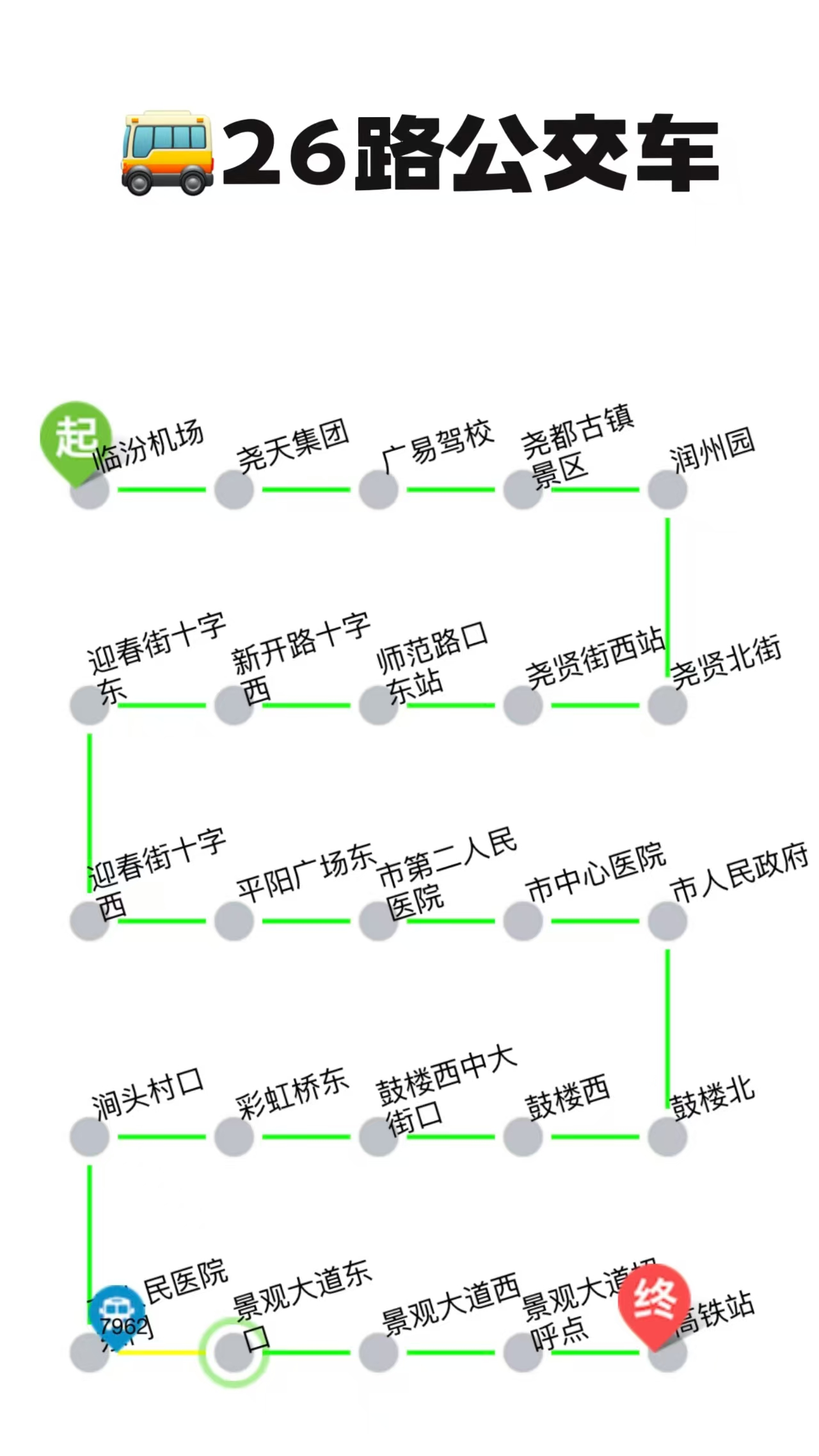 为方便旅客出行,临汾机场开通26路及30路公交车,具体运行时间以机场航班时刻为准,公交公司服务热线:0357-8292640。