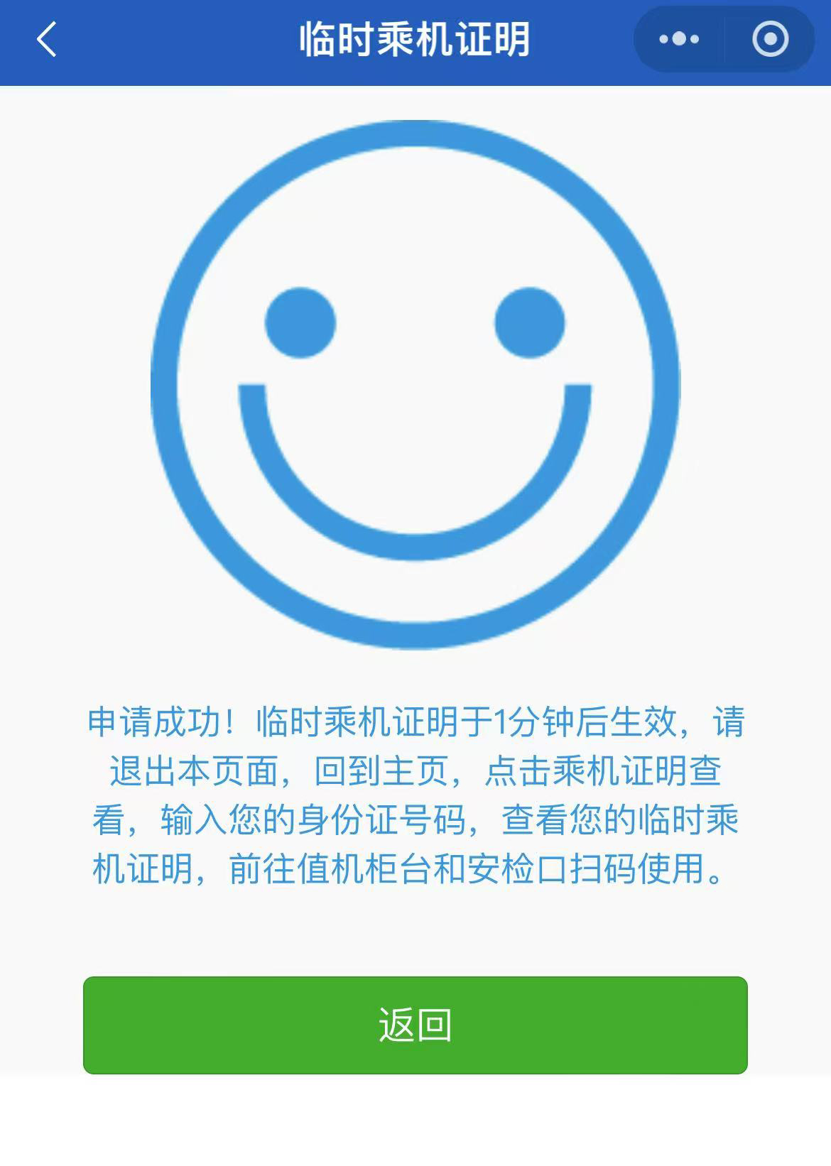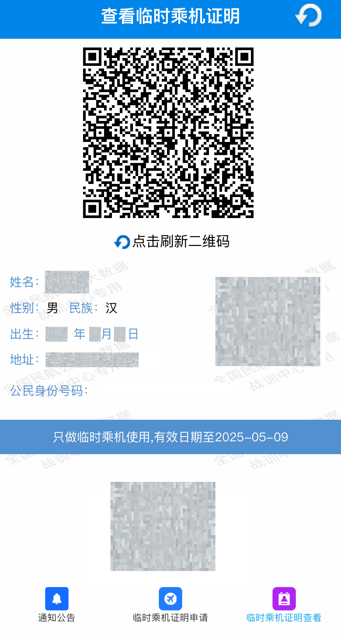 5.约60秒后,可查看临时乘机证明